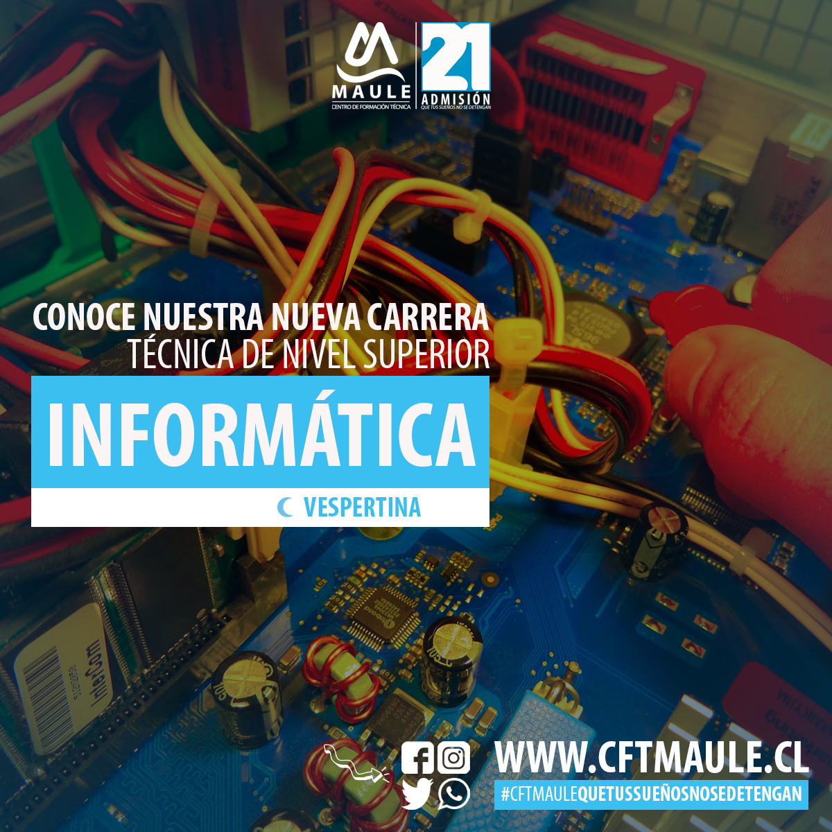 Como una forma de potenciar las alternativas académicas en áreas relevantes para el crecimiento de la Región del Maule, el Centro de Formación Técnica Estatal del Maule abrió la nueva carrera Técnica de Nivel Superior en Informática, actualmente disponible en jornada vespertina para este 2021.